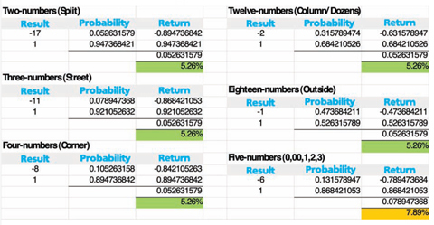 How do I come up with the percentage 5.26 percent? Roulette is easy to calculate because it’s straight mathematics. You can figure it out using a hand calculator, but I personally prefer using an Excel spreadsheet.