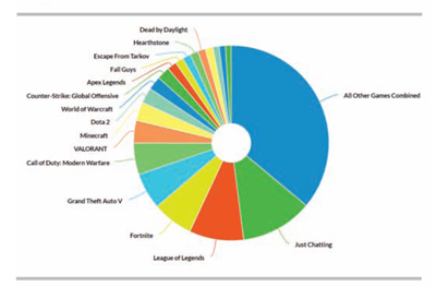 Platforms such as Twitch (Amazon) have as many as 1.4 million daily active viewers. According to TwitchTracker, more than 650 billion minutes of content was streamed in 2019, with more than 55,000 live streaming channels available to viewers at any time. This included an average of 13,000 games streamed weekly. So far in 2020, more than 590 billion minutes of content has been streamed, representing 54 percent growth over this time last year.