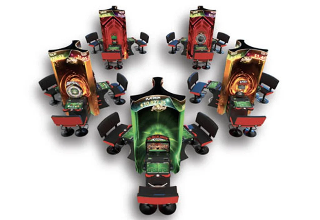 Newer products featured multiple-game setups and live dealers hosting games for collections of player terminals that could reach into the hundreds.