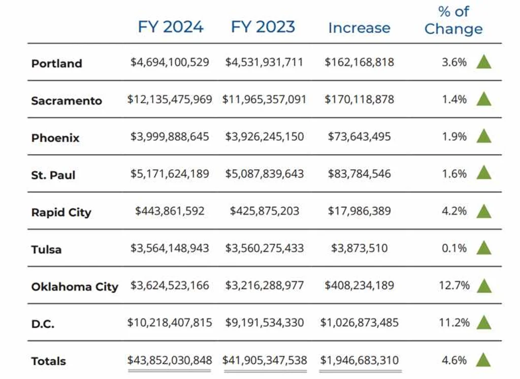 All eight of the geographic regions tracked by the NIGC posted YoY increases in FY24, although the Tulsa region was essentially flat (+0.1 percent). The two largest increases came from the Oklahoma City and Washington, D.C. regions, which posted gains of 12.7 percent and 11.2 percent, respectively. The OKC region encompasses western Oklahoma and Texas, while the D.C. region is essentially the entire East Coast and Southeast.