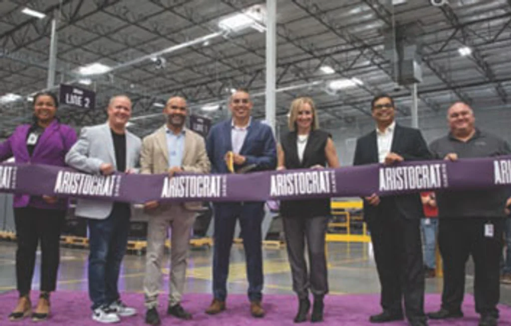 The 265,000-square-foot campus now serves as Aristocrat’s manufacturing and distribution hub for much of North America and Latin America. This new facility is more than double the size of the previous location, increases manufacturing from eight to 12 production lines, and brings advanced technology to better meet current demand.
