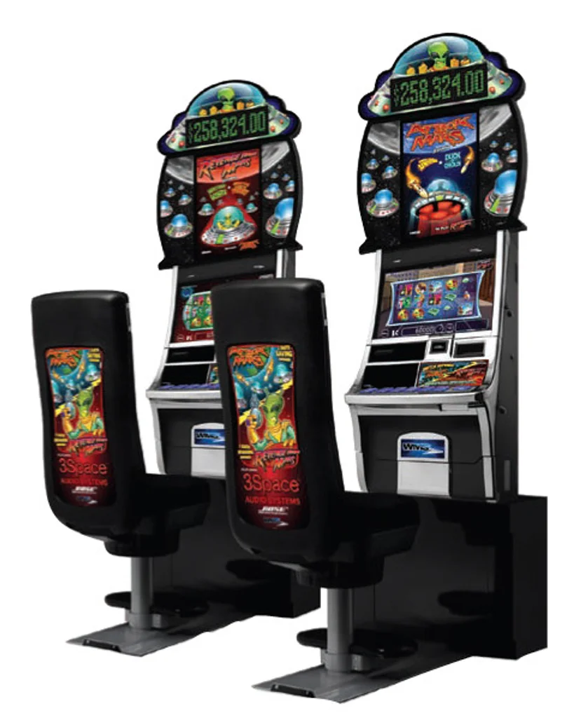 Both of the games are available in 25-line or 40-line configurations. The Sensory Immersion style comes with the trademark motion chair and surround-sound BOSE speakers, in this case used for funny bonus rounds surrounding the cheesy sci-fi Martian-attack theme.