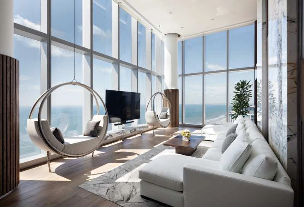 Pops of color complement the ocean views, while luxe bathrooms feature marble flooring, double vanities and oversized showers. Newly built suites offer elevated interior finishes and additional amenities such as dining areas, wet bars and generous lounge seating.