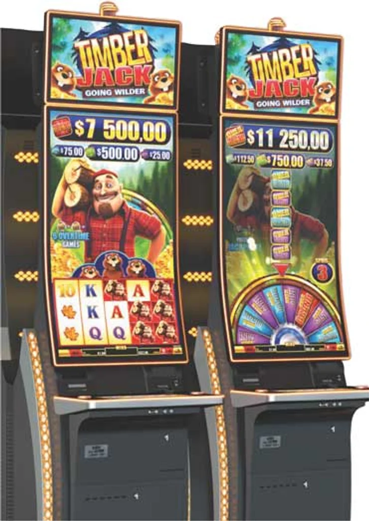 Take the game Timber Jack Going Wilder, just released. It is a three-pot game with two free-game bonus features. The “Beaver Pot Fillers” are activated by wild symbols with coins attached. This triggers full-reel stacks of wild symbols called “When Will it End?” This feature keeps stacking credit awards and any of the lower jackpot amounts on top of the wild stack, accumulating pays.