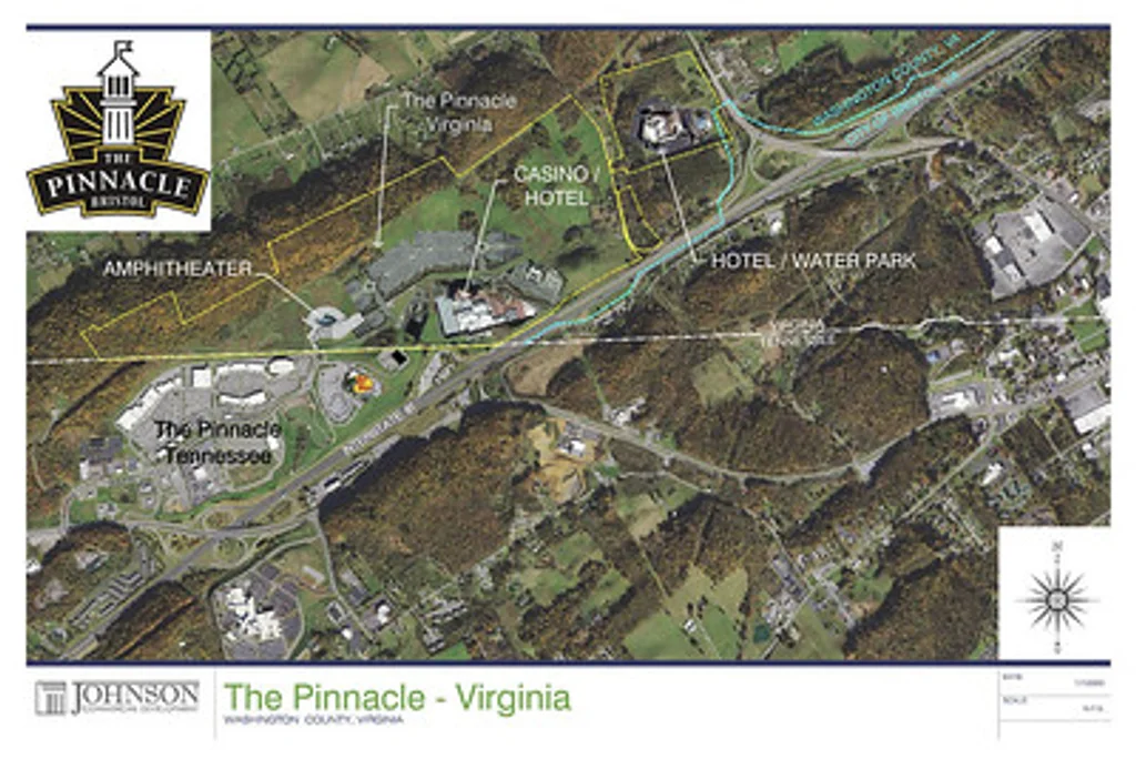 The Eastern Band of Cherokee Indians, owners of Harrah’s Cherokee and Harrah’s Cherokee Valley River Casinos in North Carolina, have announced a plan to develop a casino on 350 acres at the Pinnacle commercial center in Washington County, Virginia. The proposed casino would directly compete with the proposed Hard Rock Bristol Resort and Casino, planned for one mile away at the former Bristol Mall.