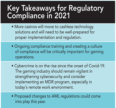 As the gaming floor transforms, casinos cannot take their eye off the ball related to cash transactions, which are still the heart of Title 31/AML compliance. Title 31/AML remains a vital component of any casino’s regulatory structure, and the tone starts at the top.