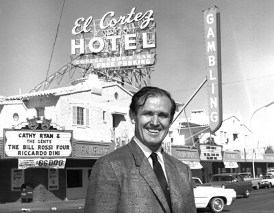 In 1963, the “King of Downtown” Jackie Gaughan added El Cortez to his stable of properties, buying it from Houssels for $4.5 million. Over the years, Gaughan added a hotel tower and the former Ogden House, which was renovated into 64 suites, giving the property a total of 364 rooms and suites.