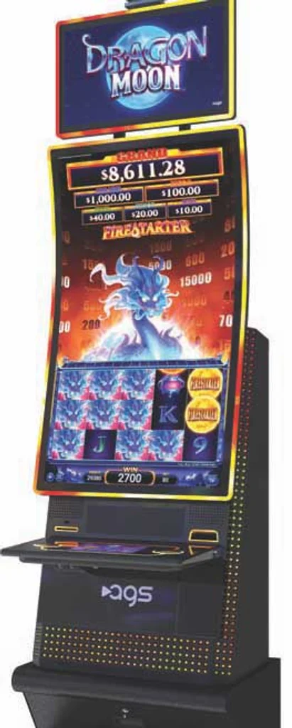This is a new AGS game family on the Orion Curve cabinet. The inaugural games in the series are Dragon Moon and Egyptian Diamond. Both base games are five-reel, 243-ways-to-win setups.