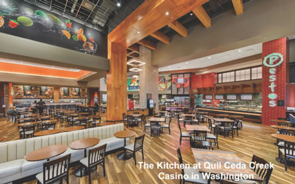 TBE, in partnership with Rippe Associates, opted to go for single-payment touchpoints for the Kitchen at Quil Ceda Creek Casino in Tulalip, Washington. Guests pay for all selections at one time at the innovative food hall venue, which features 212 seats and eight food options ranging from seafood to steaks, pizza, sandwiches and more. The venue also boasts the region’s first greaseless kitchens, incorporating “energy-saving wind-speed and induction cooking technologies,” the firm says.