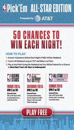 The NBA historically has been at the leading edge of fan engagement, and this year’s All-Star Weekend showcased the league’s first foray into real-time F2P gamification with “NBA Pick ‘Em: All-Star Edition, presented by AT&T.” Starting with Friday night’s Rising Stars, fans were asked one to two predictive play questions per commercial break. Players with the most points at the end of each night were awarded “money-can’t-buy” NBA experiences, such as welcoming a draft pick to the league at the 2020 NBA Draft in New York, or courtside seats to the 2021 NBA All-Star Game in Indianapolis.
