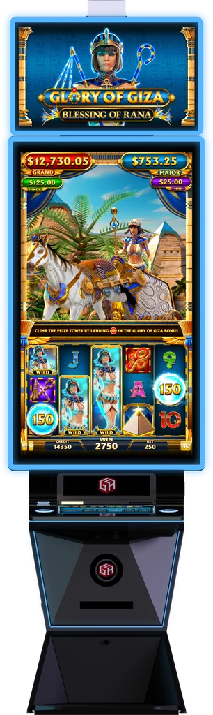 According to Colella, a highlight of Gaming Arts’ G2E display will be Glory of Giza. Created by Gaming Arts developers, it features enhanced 3D animations of Rana, the goddess, moving across the screen in a horse-drawn chariot, and custom audio created by sound designer Willie Wilcox, the drummer of the band Utopia who was Bally’s senior audio director for 10 years. (He did the audio for the Michael Jackson slot.)