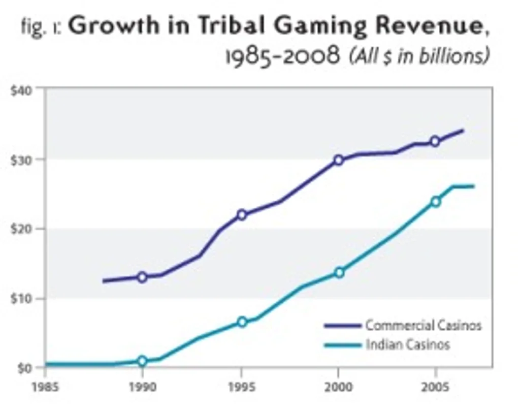 n October 16-17, 2008, the Arizona State University School of Law hosted a conference at Fort McDowell Casino to commemorate and critically examine the 20 years of Indian gaming under the 1988 Indian Gaming Regulatory Act. The event attracted scholars, policy makers and tribal representatives from around the country, many of whom had participated directly in the creation and implementation of the act. Our paper examined the economic impacts of Indian gaming under IGRA and complemented the political work presented by other academics whose work examined the ways that IGRA resolved specific legal and regulatory dilemmas and allowed tribes to pursue Class III gaming without fear of federal criminal prosecution. An excerpt from the paper appears here: