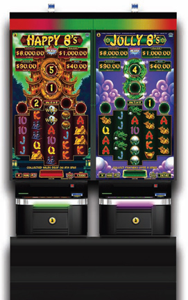 Happy 8’s and Jolly 8’s both offer persistent-play features. The games’ main primary-game feature is “Scatter Blast,” an innovative accumulation mechanic for bonuses, progressives and added wilds over a cycle of eight spins.