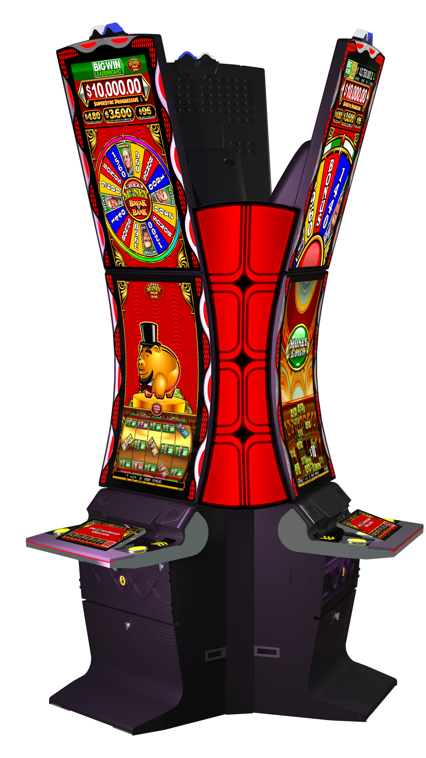 Included in the Prism Skybox games will be the inaugural title for the cabinet released this summer, Crazy Money Break ‘N’ Bank, which brings a pot-filler bonus to the long-running brand. The collection pots are golden piggy banks that also are caricatures of the two greatest U.S. presidents—George Washington, whose piggy version is called “Gorge Washington;” and Abraham Lincoln, aka “Baberaham Lincoln.” It also features the familiar “Money Catch” bonus, in which players touch the screen to grab bills flying around presidential statues.