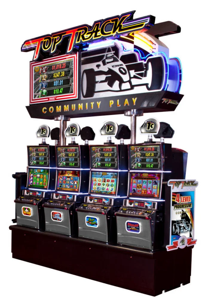 Top Track takes the same game program and applies it to a Grand Prix auto race. Eligible players are allotted drivers based on their bet level, and each community race will award one progressive prize and consolation prizes to each other player on the bank.