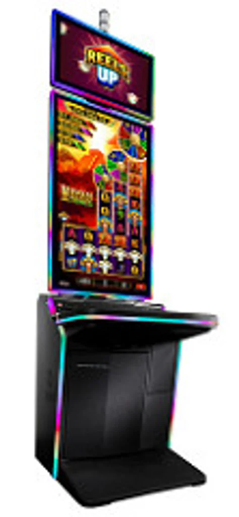KX 43 features a 43-inch 4K Ultra HD display, relaxed slant top, standard base width, dual cup holders, dual spin buttons, USB charger, and multi-color attract lighting that stretches the entire length of the cabinet—from the bottom of the base to the top of the topper. Its debut library includes the Reels Up linked progressive series, Triple Sparkle linked progressive series, and Treasure Ball extended ROM linked progressive. All games feature custom game content from the digital topper down through a specially illuminated touchscreen button dash.