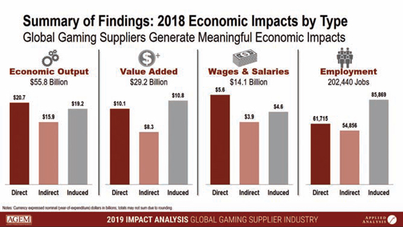 We’ve always known that the impact of gaming goes far beyond the physical casinos and the jobs they create. When you add AGEM and the products and services that operators buy from AGEM members and all its employees, the economic impact is substantial. Explain what that means.