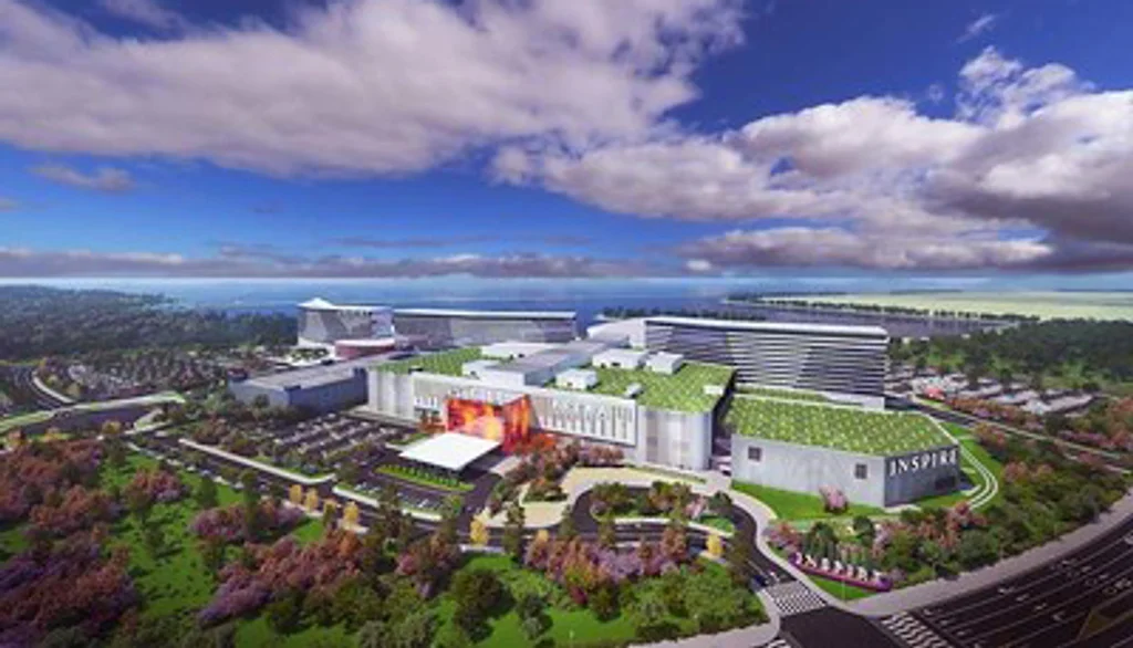 Mohegan INSPIRE will include three five-star hotel towers with a total of 1,275 rooms, a 15,000-seat multi-purpose arena, a foreigner-only casino, indoor and outdoor attractions, and commercial facilities. IT will be located only 10 minutes away from Terminal 2 of Incheon International Airport and one-hour from downtown Seoul.