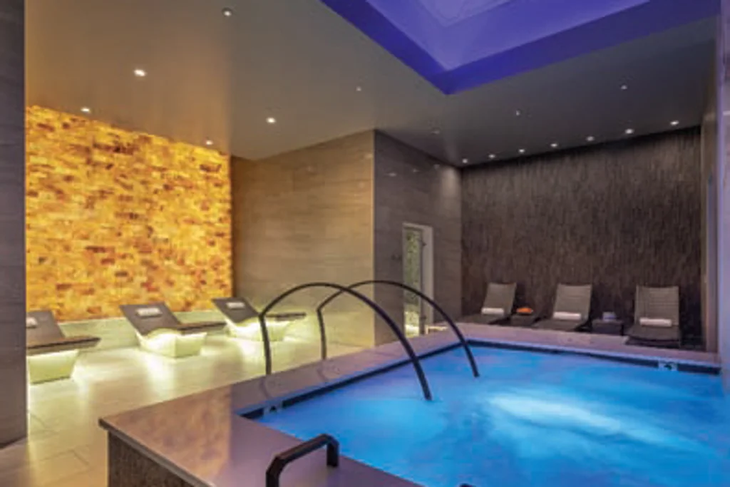 Designers were challenged to transform and double the size of the existing 5,000-square-foot spa space into a 12,000-square-foot luxury spa layered in ambience, richness of texture and sensory experience. Offering a high-end, elegant residential feel and comfort, it enables guests to relax and be pampered in 11 treatment rooms, a full-service salon, and separate men’s and women’s lounges and aquathermal areas featuring whirlpools, steam rooms, saunas and cooling showers.