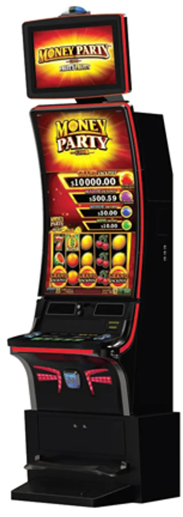 Novomatic designed the Money Party progressive link around the classic fruit-style games, with fruit symbols abounding in base games Fruity Fruity and Juicy Juicy, both five-reel, 25-line or 50-line games with a four-level progressive jackpot. It is featured on Novomatic’s Panthera 1.43 Curve cabinet.