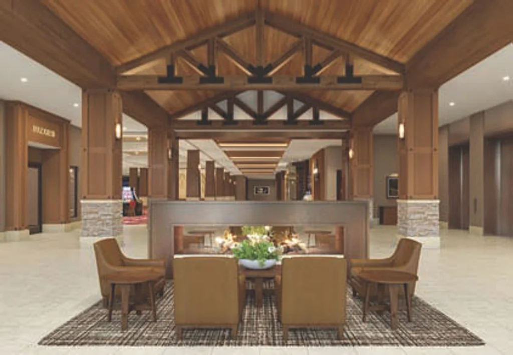 The project was designed by Bergman Walls & Associates, architect for the original $670 million casino. The architects took their aesthetic cues from Snoqualmie history. For example, the hotel’s contemporary slant roof was inspired by the original longhouses of the tribe’s ancestors, and artwork placed throughout the resort includes many nods to tribal culture.
