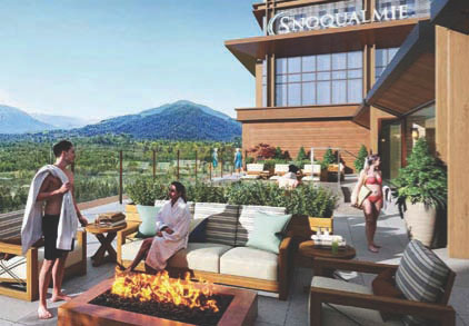 The design also takes advantage of stunning panoramic views. The resort’s front desk, indoor pool, outdoor sun deck, prefunction space and a number of rooms and suites look out on the majestic landscape of the Pacific Northwest, including the lush Snoqualmie River Valley and Mount Si, part of the Cascade Range.