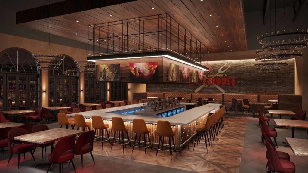 Inside, guests are greeted by a palette of warm woods, natural stone, metal accents and locally inspired art installations creating a space that feels both elevated and approachable. The interior design concept by R2Interiors weaves together regional storytelling and contemporary comfort. Custom terrazzo flooring, ambient lighting features and artisanal finishes provide visual cohesion, while flexible layout zones make it easy for guests to transition from gaming to dining to entertainment.