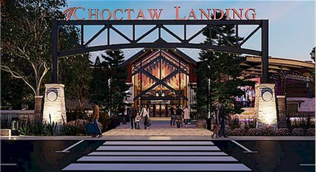 The $238 million Choctaw Landing Casino features 600 slot machines and eight table games. The hotel offers 100 guest rooms including 15 suites, plus three conference rooms and more than 4,300 square feet of meeting space, a restaurant and three outdoor dining and bar options, fitness center pool area with nine cabanas, two hot tubs and three fire pits, a 125-seat outdoor amphitheater and a mercantile with gifts, groceries, deli, Starbucks and 24-pump fuel station.