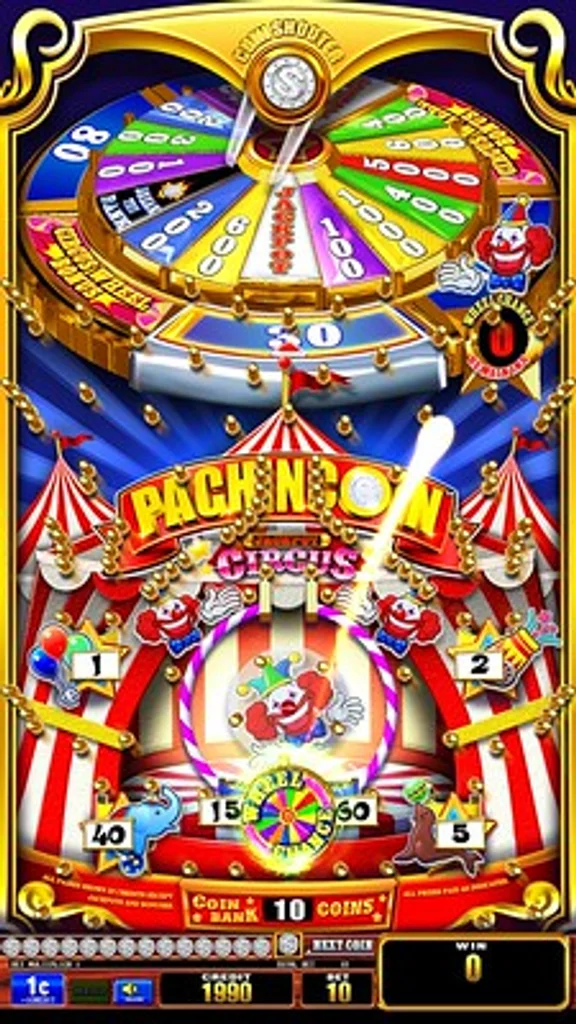 One of the pachinko-style games comes, naturally, from a manufacturer based in Japan. Aruze has launched a game called PachinSlot, with the first of three games in the inaugural series, Jackpot Circus, using a pinball-like game display on the monitor that has balls touching various credit-award pegs as it appears to fall through the game board.