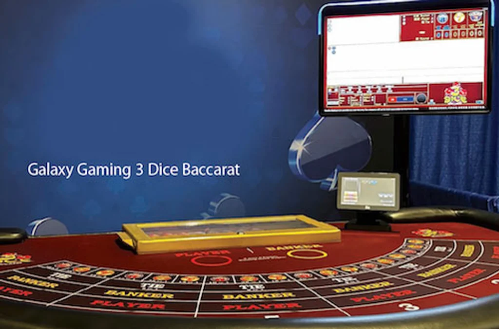 By removing the cards from the game of baccarat, and instead using two dice cups with three dice in each, with a small amount of math adjustments and no draw rules, you can play the same great game of baccarat with all of the same great side bets mentioned above. They pay a little differently because of the math difference, Omohundro says. As you do in normal baccarat, you count the three dice, drop the 10s and that is your total. (Example: a 6, a 5, and a 3 total 14. Drop the 10 and you have a baccarat total of 4.)