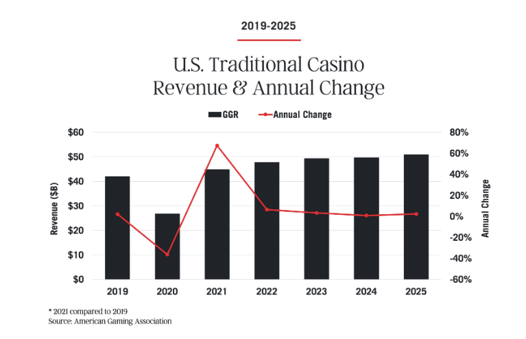 Together, these results underscore the continued strength of traditional gaming and its central role in the broader commercial gaming ecosystem—providing reliable revenue that supports jobs, reinvestment and tax contributions to state and local communities.