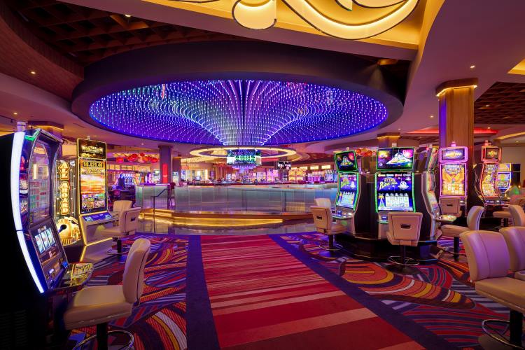 Brass accents and a playful, confetti-patterned floor add sparkle to the space. RGB-integrated light coves throughout the casino amplify the experience further, transforming the atmosphere with vivid color celebrations every time a jackpot hits.