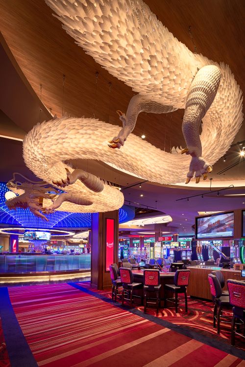 Luxury and luck find a sophisticated home in the exclusive High Limit area. Greeting guests is a breathtaking suspended crystal dragon, shimmering above the entrance as a symbol of prosperity.