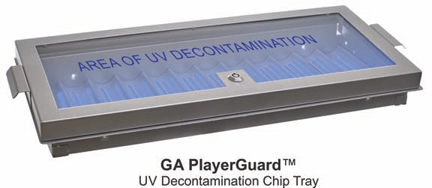 PlayerGuard also has applications for chip trays with the UV lighting under the actual chips, constantly disinfecting them. “We would basically swap out the chip trays for a UV version, where the UV would come from underneath,” Colvin says, “so, as the chips either enter or exit the chip tray, they are subjected to the UV lighting to disinfect those chips.”