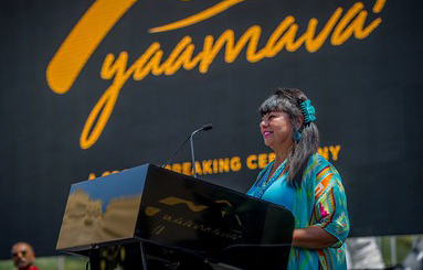 When the tribe broke ground on the expansion in 2018, the new name adorned a banner behind former San Manuel Chairwoman Lynn Valbuena (.).
