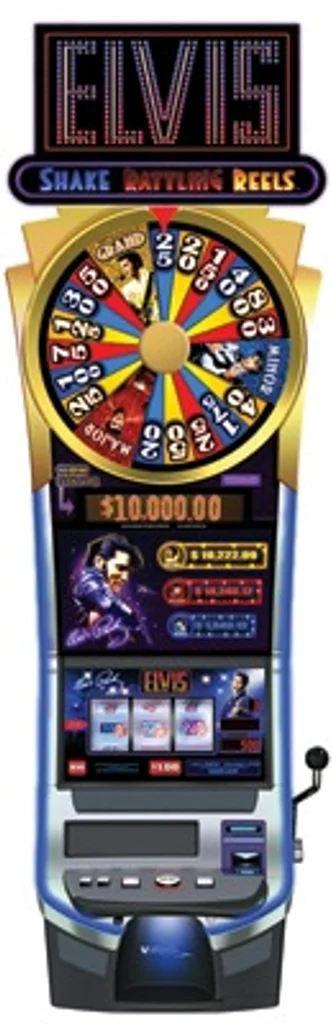 A gaming experience that’s all shook up, Elvis Shake Rattling Reels slots offers three visually different, player-selected interfaces representing three different eras of Elvis’ career. The lighting, music and colors of the game all change to the selected Elvis-themed aesthetic. This theme features a mechanical wheel, a three-level local area progressive and a wide area progressive.