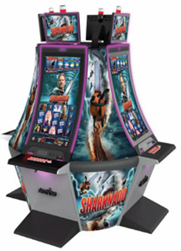This new premium game on Aristocrat’s Arc Single cabinet features multiple bonus events themed around the TV disaster series about sharks set loose across flooded streets in Los Angeles.