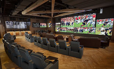 The lounge’s custom layout and design provide sports fans with a comfortable ambiance to enjoy a beer while cheering on their favorite teams on any of the venue’s 22 televisions. Above the bar and on a large-scale central column are eight 85-inch, six 65-inch and eight 43-inch screens for ideal viewing from sectional sofas and lounge chairs, casual dining tables with chairs, and bar stool seating at the large sports bar.