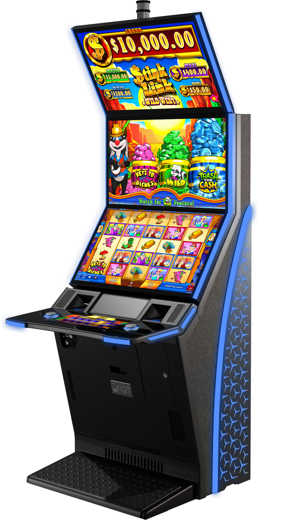 This new addition to IGT’s Stinkin’ Rich series—complete with game host “Richard the Skunk”—modernizes the theme with three pots leading to instant bonus events. It is available in two base themes, Hawaii and Wild West. (Richard the Skunk dresses to match the base theme, of course.)