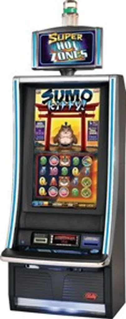 This new game on Bally’s V32 cabinet uses the 32-inch vertical portrait screen to expand the scatter-pay base game and to enhance the animation associated with the comical cartoon sumo wrestler. It also is one of the first Bally slots to feature “UWin,” which sends random bonus games to the iDeck LCD button pad.