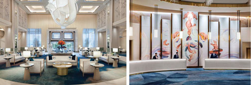 “The way we master-planned enabled us to create three distinctive lobbies, architecturally,” Steelman says. “We took a page out of what we’ve been doing in Asia. It’s the right thing to do: three porte-cocheres, three entrance points, three statements. We put Crockfords in a strategic location, because it had to relate to VIP gaming, very close to the high-limit gaming areas and the Asian restaurants.”