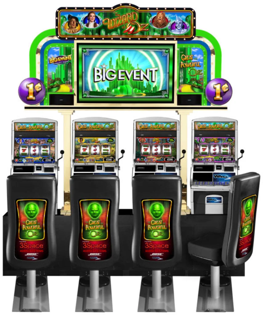 The latest sequel to WMS Gaming’s monster hit game based on the MGM classic The Wizard of Oz places the movie theme in the popular Big Event community-gaming series. Banks of four games front an overhead LCD screen, with all players entering the bonus event at once.