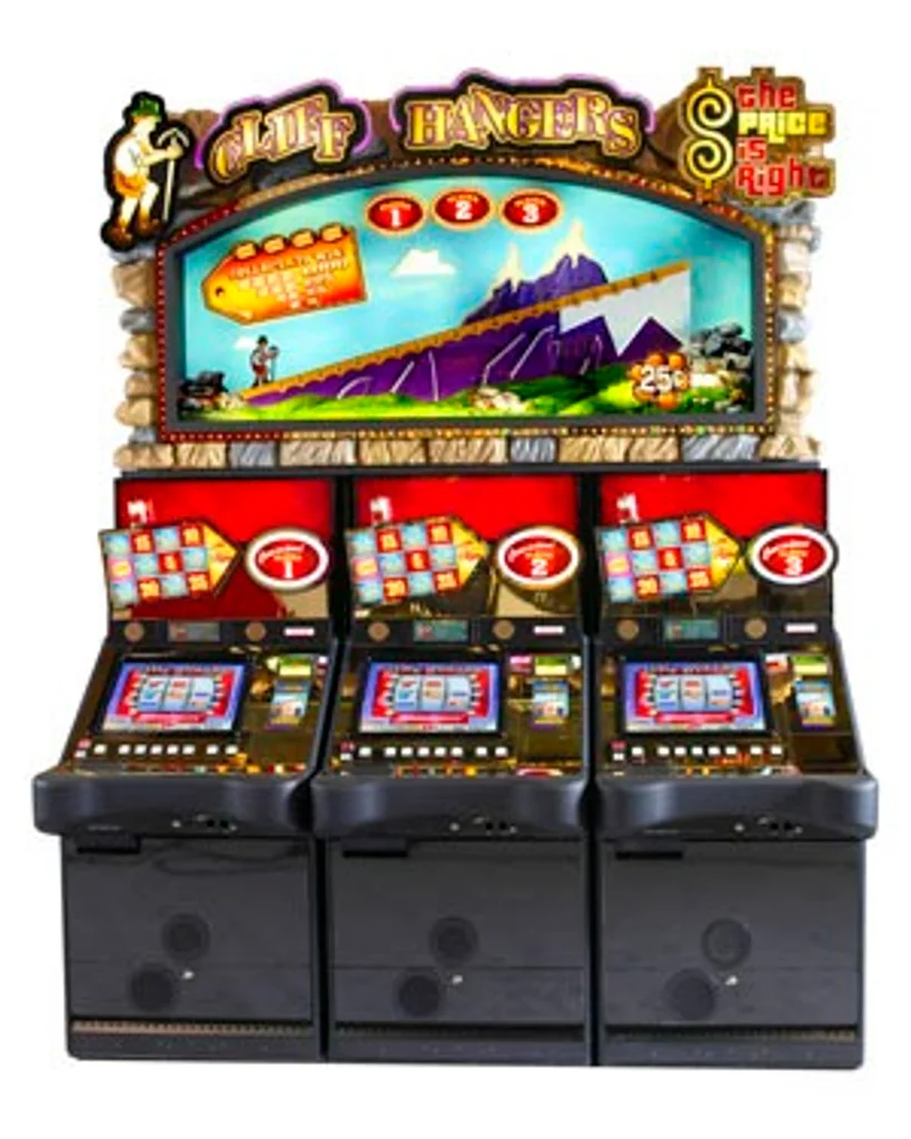 The slot’s theme is centered on one of the price games from the television series, called “Cliff Hangers.” The slot game replicates the game show gimmick in a huge display-depicting an alpine hiker ascending a mountain-in front of three individual machines. Each player sits at his own independent slot game, and the display serves as a common device for each player’s bonus events.