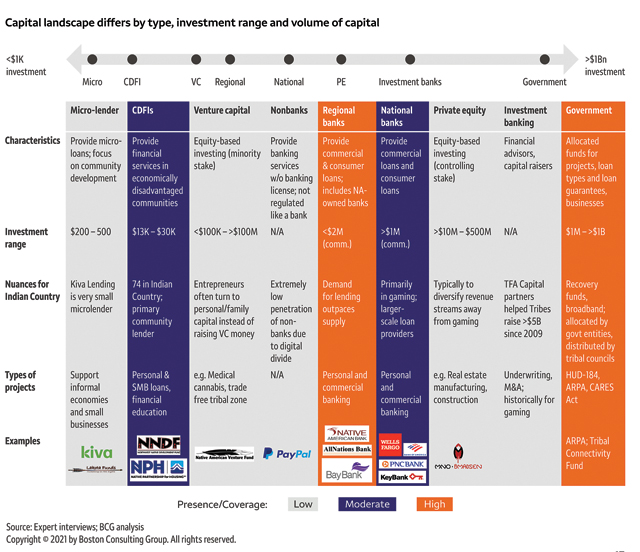 One of the major problems for tribes of all sizes is the lack of access to capital. The chart at right demonstrates the few resources tribes can access.