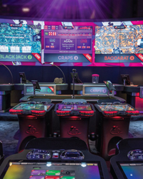 ETGs fill the need of many new table game players to learn the games without being intimidated by trying to learn amid seasoned players, he says, but also serves the purpose of offering a lower minimum than the live games. There also are many players—both young and old—who simply enjoy the machine experience and the ability to play several games at once in the stadium setups.