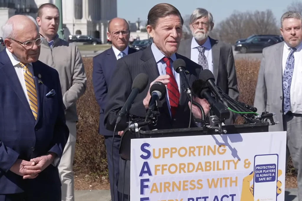At a press conference on Capitol Hill March 11, Representative Paul Tonko and Senator Richard Blumenthal gathered responsible and problem gambling advocates and an addiction survivor to talk about the Supporting Affordability & Fairness with Every Bet Act (SAFE Bet Act).