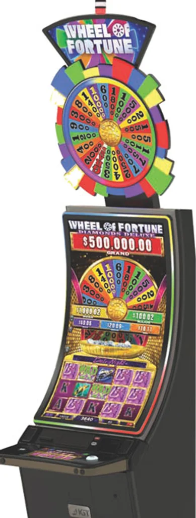 This latest entry in the venerable Wheel of Fortune franchise, on the imposing PeakSlant49 Wheel cabinet, adds a persistent pot-style bonus to the classic theme.