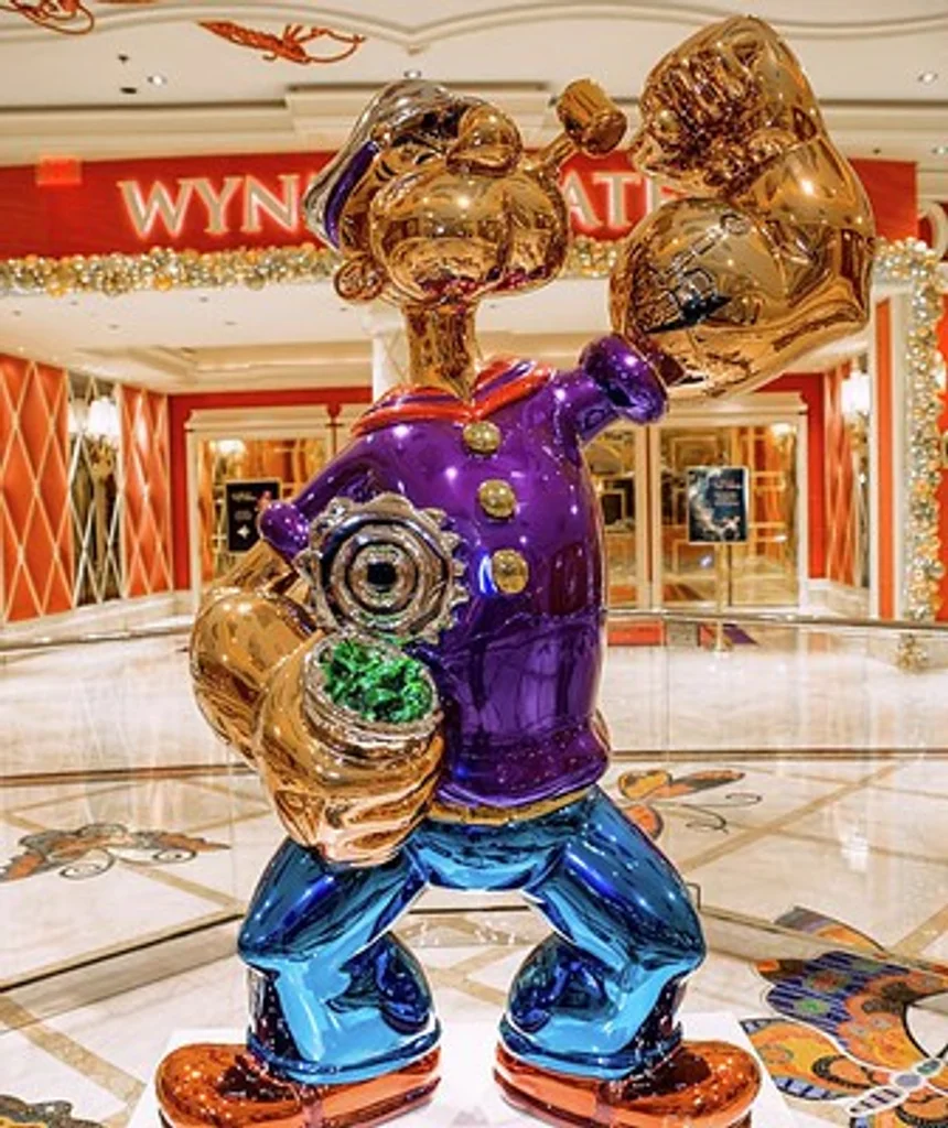 Koons is a big fan of the cartoon character that is almost ninety years old and has created three statues of him. The character is a symbol of strength and machismo.
